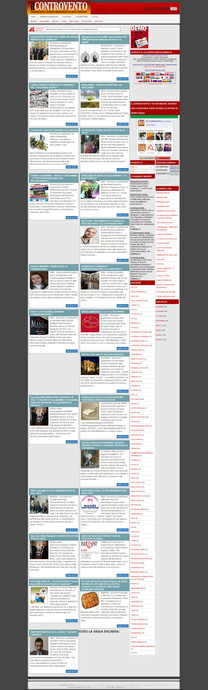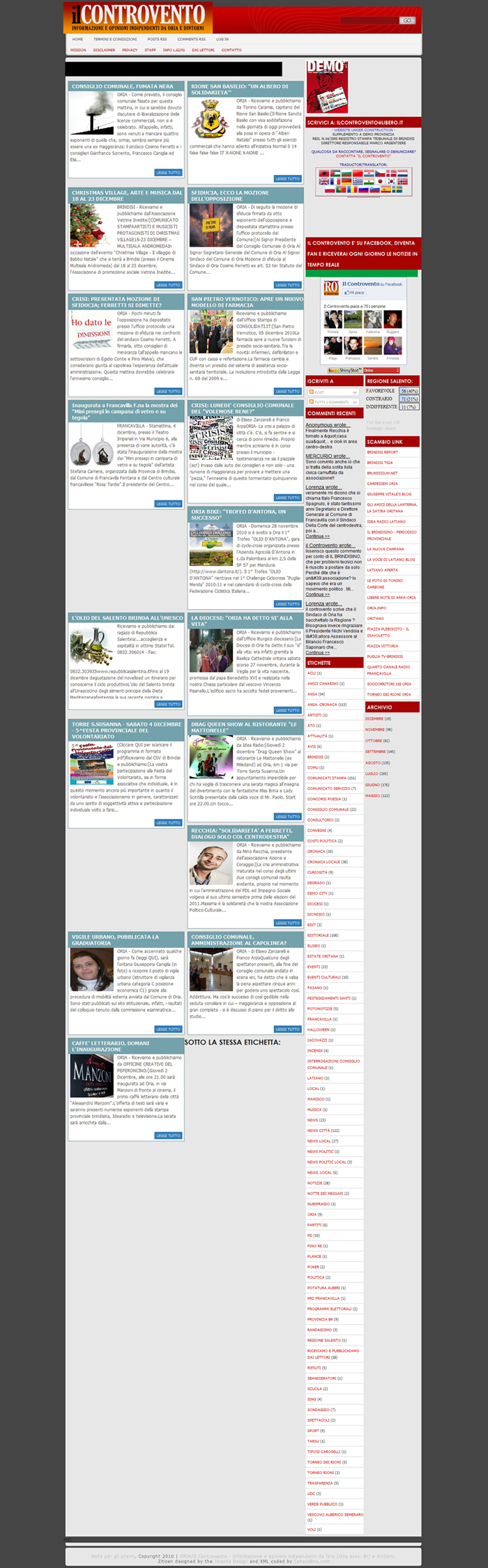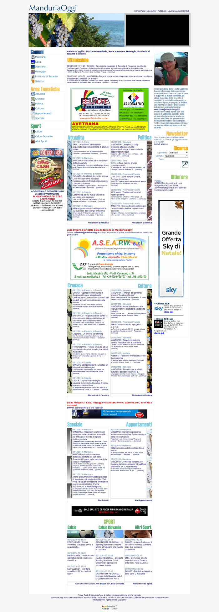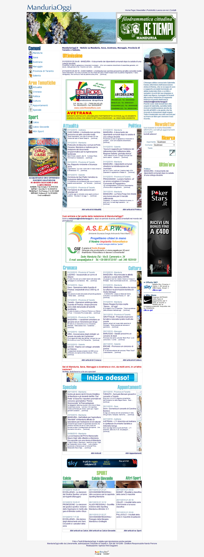 Dicono di noi Rassegna video Rassegna stampa e web Allegato: La Gazzetta del Mezzogiorno - Brindisi Provincia 4-12-2010.pdf Art. La Gazzetta del Mezzogiorno 6-12-2010.pdf Senza Colonne 07-12-2010.pdf Brundisium.net-01-12-2010.jpg Ciclostyle.it-01-12-2010.jpg Fai.informazione.it-01-12-2010.jpg Il-Controvento-home - 05-12-2010.jpg Il-Controvento.it-05-12-2010.jpg Il-Controvento.it-home - 06-12-2010.jpg Il-Controvento.it-06-12-2010.jpg Italianewsag.eu-home-01-12-2010.jpg Italianewsag.eu-01-12-2010.jpg Manduriaoggi.it-home - 01-12-2010.jpg Manduriaoggi.it-01-12-2010.jpg Manduriaoggi.it-08-12-2010.jpg Manduriaoggi.it-home - 09-12-2010.jpg PugliaNews.org-home - 01-12-2010.jpg PugliaNews.org-01-12-2010.jpg Quotidianosanita.it-home - 05-12-2010.jpg Quotidianosanita.it-05-12-2010.jpg